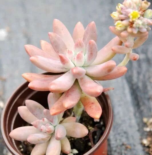这是多肉植物中的新成员,也是一个杂交的品种。在2001的时候,韩国的园艺人员将胧月多肉和乙女心进行了杂交,结果得到了一个崭新的品种,它就是秋丽多肉。从外形上来看,这种植物是一个中等株型,通常能长到20厘米左右的样子。它的叶片是细条形状,表面微微的向下凹去,就仿佛是一个小巧的花瓣一般。