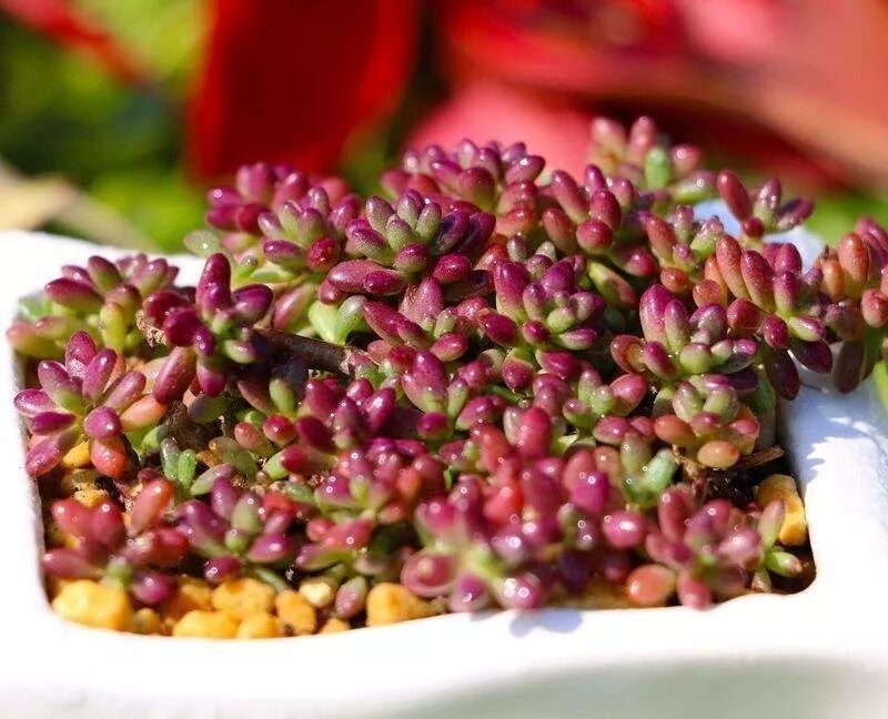 属于马齿苋科的紫米粒,因为特别形状和色泽,很受花友欢迎,小编也比较喜欢。这种多肉,在多肉中,算是容易存活的,小肉叶掉在盆土边上都可以重新长出来,平时做扦插,成功率也是非常高的,正因为这样,紫米粒非常容易爆盆。