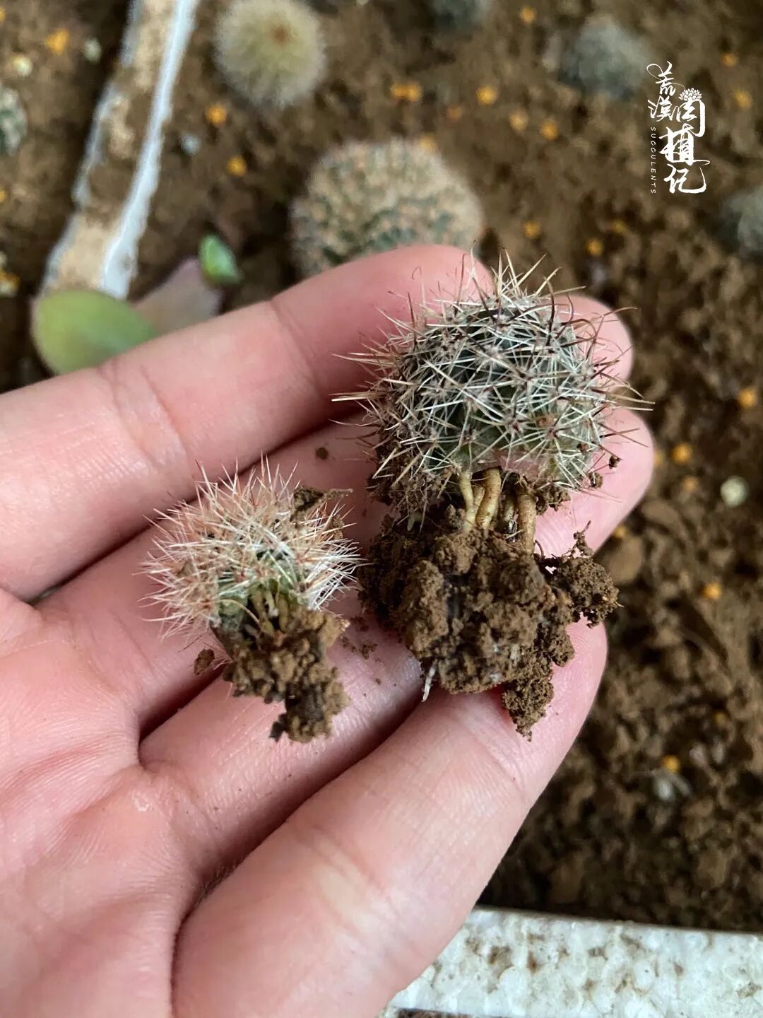 注:晾出根再上盆是部分肉友的选择,但是我的实战经验是,我晾了半年的花笼,不仅没出根,还给晾成了干尸,针对我这种情况,有经验的肉友们告诉我:花笼本身就很难出根,而且多代嫁接的仔球在落地时也基本上不会出根。一般第一代嫁接球落地跟侧芽比较好出根。