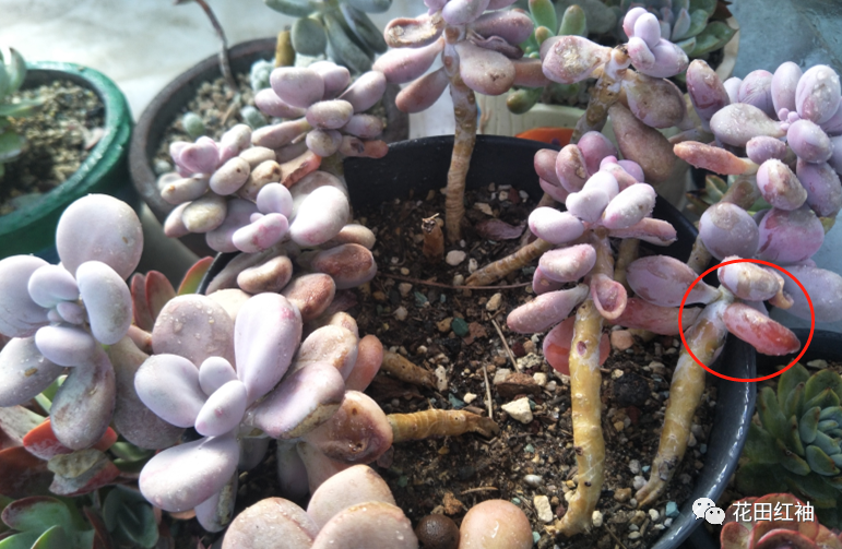 如果多肉只是基部的叶片变色腐烂,只要摘除腐烂的叶片,便不会影响到多肉的生长。另外也可以给盆面铺一些颗粒,避免叶片直接接触到湿润的土壤,便可以有效预防多肉基部叶片腐烂。