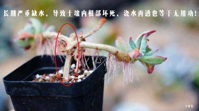 因为长期的断水和中间脱土后长期的晾晒,上盆后的肉肉是根本没办法吸收水分的,连水都喝不饱,肉肉怎么才能变胖呢?